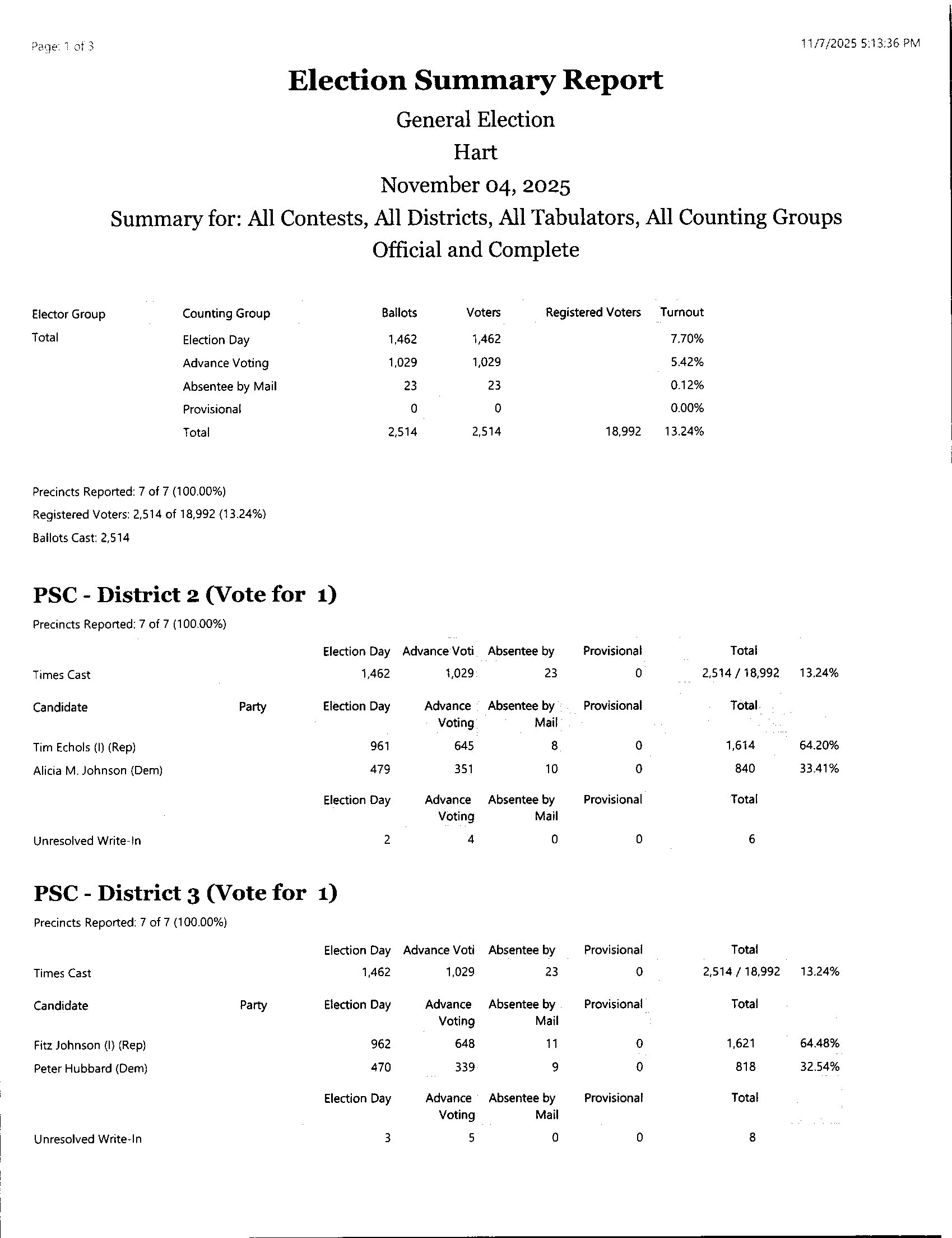 Sample Ballot Audit Results Certificat of Returns 1 Certificat of Returns 2 Certificat of Returns 3 Certificat of Returns 4 RLA notice 2025 Notice of sonsolidation and canvassing Notice of Processing Ballots Voting Checklist Qualified Candidates Notice of Election Cancellation Advanced Voting Notice L&A Public Notice City of Hartwell Call for Election ARE YOU ELECTION READY Hart County Precinct Addresses House Bill 1018 - Powers & Duties of the Board Bylaws of the Board of Elections |